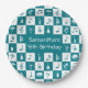 Custom teal and white music notes and instruments paper plate