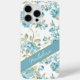 Custom Teal Aqua Blue Sage Green Flowers Pattern Case-Mate iPhone Case