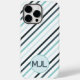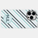 Custom Teal Blue Monogram & Stripes Case-Mate iPhone Case