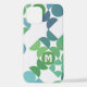 Beautiful contemporary teal blue, fern, and shamrock green coloured geometric circles and half circles pattern on a crisp white background. With the option to customise or personalise with a name monogram or initials of your choice. Ornate, elegant, stylish, and eclectic design for the fancy artistic fashionista, the artsy fashion diva, popular hip trendsetter, vintage retro art style, and abstract digital geometric motif lover. This design is available in Apple iPhone 6, 7, and 8 Plus, 10 or X, XR, XS, 11, 12, and 13 Mini, 14, 15 Plus, and Pro Max cellphone cases. Show off your style, look fashionable trendy, and feel stylish with a unique design on a mobile device accessory of your choice.