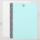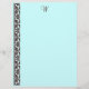 A personalizable monogram in a deep chocolate brown scripty letter and a vintage mediaeval art element on a light teal blue background. Use this single letter monogram template for weddings, birthdays, announcements or to add a personal professional touch. Click Customise It to change fonts or background colours.