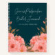The cover features soft watercolor pink blossoms set against a midnight teal background, symbolizing God's abiding love, intimacy with Christ, and spiritual renewal. Elegant lettering beautifully titles “Grace's Postpartum Bullet Journal – My Fourth Trimester.” Just edit the design to swap in your name or the name of a new mom who would love a space to jot things down.