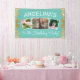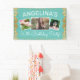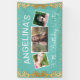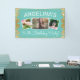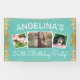 Personalised teal and gold birthday party banner, featuring a vintage ornate gold border & confetti, 3 photos for you to change to your own, and the name of the person!