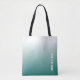 Custom Trendy Modern Elegant Cute Teal Blue Green Gradient Personalised Template Shopping Shoulder Tote Bag.