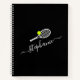 Elegant feminine tennis monogram with elegant script personalised monogram name notebook on a black and white cucstom cover, perfect for the womens or girls tennis player, coach, instructor, or camp counsellor or new team member.