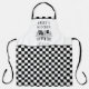 Custom Text, Black and White Chequered Plaid Kitch Apron