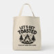 "Let's get toasted" by the campfire! Change the text field as you wish. See my store for more camping and hiking items.