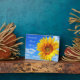 Custom Text Card - Sunflower and Bees on Blue Sky Plaque