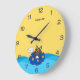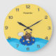 Custom Text Cartoon dog Yellow Large Clock