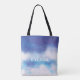 Elevate your everyday carry with our Celestial Blue Nebula Tote Bag. This stylish tote features a breathtaking gradient of deep blue fading into soft pink and white, adorned with delicate star patterns that evoke the serene beauty of the night sky.