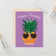 Funny pickleball Birthday card with juicy pickleball pineapple and customisable text front / back. The default purple background colour can be changed, too.