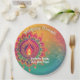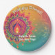 This vibrant paper plate is a riot of colours, featuring a stunning mandala design with a glowing diya at the centre, symbolising the festival of lights. The playful “Happy Diwali” text at the top sets the festive mood, while the customisable message below adds a personal touch. Imagine serving your delicious sweets on this plate with a message like, “Enjoy the Sweets, Love from Priya!” – it’s sure to bring a smile to your guests’ faces.