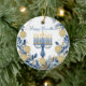 This exquisite Hanukkah ceramic circle ornament, named “Festival of Lights Harmony,” is a perfect addition to your holiday decor. It features a beautifully crafted Star of David in a stained glass style with rich hues of blue, gold, and brown, creating an elegant mosaic effect. In the centre, bold white letters spell out “Happy Hanukkah!” . This message adds a personal touch that resonates with the joyous celebration. Customisable text options on both sides allow you to add a personal greeting or name, making it an ideal keepsake or gift.