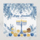 Introducing the “Festive Foliage Hanukkah Card”! This elegant square greeting card is perfect for celebrating Hanukkah with a personal touch. The card features a beautifully illustrated menorah with all candles lit, surrounded by intricate watercolor illustrations of blue and white foliage and golden coins, symbolising the festive spirit of Hanukkah.
