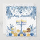At the top, “Happy Hanukkah” is written in a graceful script, setting a joyful tone. Below the menorah, you can customise the text to include your family name or a special message. The back of the card also offers customisable text options, allowing you to add a heartfelt message or additional greetings.