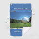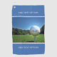 Customise text on Golf Drive Towel. Design shows golf ball on tee with 3 areas to customise text or delete sample text.