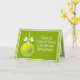 Green and white tennis Christmas tree bauble folded Christmas Card on white and green background. Custom text