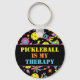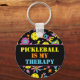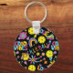 Sweet black double sided keyring with Groovy, retro 90s style pickleball pattern with yellow pickleballs and black background.