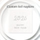 Celebrate the New Year with style with the customisable real foil napkins. The year 2026 written in editable stylish large font is displayed in the centre of this white cocktail napkin. "Happy New Year" written in simple modern typography can be customised to your own words, names, or business name if desired. These would be great for a New Years Eve Party, or a New Years Eve dinner, or a simple romantic dinner with your spouse. See my collection for matching glassware for a modern elegant New Years celebration.