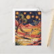 Step into the vibrant world of Joshua Tree National Park with this expressive Van Gogh-style landscape featuring a roadrunner racing through the golden desert sands beneath swirling suns and shimmering skies. Inspired by the bold brushwork and dynamic movement of Vincent van Gogh, the scene captures the lively desert ecosystem: Joshua trees reaching upward, sun-lit rock formations in the background, and the roadrunner embodying life and motion in the arid American Southwest. This design brings together vintage travel poster aesthetics and modern impressionist flair—ideal for anyone who loves national park wildlife, desert-inspired home décor, or boldly colorful art that tells a story. Display it as a postcard, art print, or gift to commemorate southwestern travels or a passion for nature’s wild beauty.