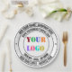 Paper Plates with Custom Text Logo Name Address Website Promotional Stamp - Personalised Business / Personal Party Plates Gift - Add Your Name - Company / Address / Logo - Photo or QR Code / Website or Email or Phone / more - Resize and move or remove and add elements / text with customisation tool. Choose / add your favourite background / elements and text colours / fonts / size ! Please see my others projects / designs. You can also transfer this designs to more than 1000 Zazzle products. Please use your logo - image that does not infringe anyone's Copyright !! Good Luck - Be Happy :)