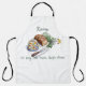 Bring the charm of freshly baked homemade bread and butter into your kitchen with this beautifully personalised apron. Beautiful watercolor elements feature a loaf of crusty bread, a floral butter dish, butter spreading knife, a bundle of fresh herbs and hovering butterfly suggest a retro vintage kitchen but with an updated modern vibe. You can personalise the apron with a name arching above, making it a unique and thoughtful gift. • Style: Classic apron with no background for a crisp, clean look • Artwork: Watercolor herb and bread with golden butterfly • Text: Sit long, talk much, laugh often in sage green below• Perfect For: Cooking, baking, entertaining, or gifting to garden and nature lovers Make your kitchen time more delightful with this personalised, nature-inspired apron—perfect for yourself or someone special.