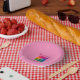 Custom Add Upload Your Photo or Image, Design, Picture, Business Company Logo Text Here Template Round Pink Colour Paper Bowl.