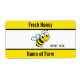 A cheerful bee is in the center of this honey jar label. You can edit the text to create your custom message. The display text says 'Fresh Honey NET WT. 16 OZ. Name of Farm. The text is black.