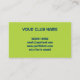 Customisable on both sides Padel (POP tennis, Paddle Tennis] Club business card with two padel racket crossed and padel ball on left . Names and contact details on reverse. Extra line at the bottom. Vivid green background at the back