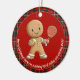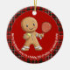 Introducing the Padel Powered Christmas ornament from the Padel Christmas Cheer collection! This round ornament brings the perfect mix of sweetness and sporty spirit to your holiday decor. Featuring an adorable gingerbread man mid-swing with his trusty padel racket, this ornament is framed in festive plaid, adding a cosy, classic Christmas touch.