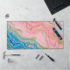 Custom Text Pink and Blue Marble with Gold Veins Desk Mat