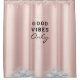 Custom Text Rose Gold Blush Pink Glitter Drips Elegant Metallic Sleek Shower Curtain featuring personalised black typography "Good vibes only" in script and modern sans-serif font, that can be easily customised with name, motivational quote or any custom text, and sophisticated white marble details. This feminine shower curtain can be a luxury bathroom decor and an unique gift for her, womens, girls, baby girls, bride, bridesmaid, friends, daughter, mum, teen girls and any beautiful and trendy woman who have a bathroom.