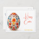 a postcard that's not just a piece of paper, but a cultural tapestry! The "Folklore Blossom Easter Greetings" postcard features an Easter egg adorned with intricate floral patterns inspired by traditional Polish folk art. The rich and vibrant colours of red, yellow, blue, and green leap off the black background, creating a stunning visual that is both eye-catching and heartwarming.