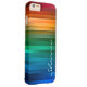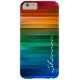 Rainbow multicolor stripe tough iPhone 6 case with custom text. Vibrant and striking rainbow ribbon stripe design featuring an array of the many shades of red, green, blue and yellow. Personalise it with your name or any other text you'd like.