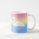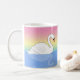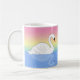 This listing is for a coffee mug with an illustrated swan on a rainbow coloured background. The design is wrapped around the mug with the swan on both sides and you can edit the text. Design by Kerri at © Tiny Doodles