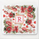 Custom Text Romantic Pink Poppies and Hearts Mouse Mat