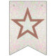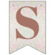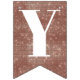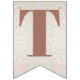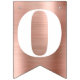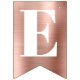 this personalised banner template design features four rotating simulated background textures, a dark sparkly metallic copper rose gold, a brushed metallic surface rose gold foil, light blush rose gold pink glitter, and opal iridescent glitter, all of which are printed. each has a text box that fits a single letter and a thick serif typeface.