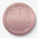 Custom Text Rose Gold Blush Glitter Sparkle Drips Paper Plate