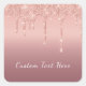 Custom Text Rose Gold Blush Glitter Sparkle Drips Square Sticker