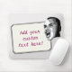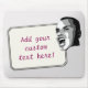 What's on your mind? Add your statement on this custom mouse pad! Digitally altered photo of young man shouting your text on a white rectangular label. Background is gradient silver.