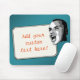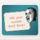 What's on your mind? Add your statement on this custom mouse pad! Digitally altered photo of young man shouting your text on a white rectangular label. Background is gradient teal.