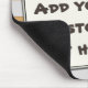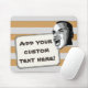 What's on your mind? Add your statement on this custom mouse pad! Digitally altered photo of young man shouting your text on a white rectangular label. Background is silvery grey stripes on any colour - you can recolor the space between those stripes by adjusting the products basic background colour!