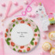Custom Text Strawberry Pattern Pink Background Paper Plate