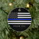 Custom Text Thin Blue Line Patriotic Flag Ceramic Tree Decoration