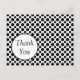 A custom Thank You postcard with a background pattern of black polka-dots on white with custom italic and block letters. on the front and room for your custom return address info on the back. Click Customise it to change fonts, sizing, background colours and more, even save your design for later.