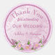 Thank you sticker for wedding party favours, thank you notes, or small gifts. Change the message to match your occasion showers, receptions, etc. Change background using your wedding colours. Personalise with newlyweds name.