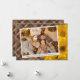 Unique, classy, trendy, pretty and decorative Thanksgiving holiday card. With room to customise or personalise with a photo and names (or family name) of your choice. With cute classic warm yellow fall Mums flowers on rustic farmhouse inspired tartan plaid pattern background design. And a customisable season greeting poem on the backside of the card.
