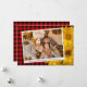 Unique, classy, trendy, pretty and decorative Thanksgiving holiday card. With room to customise or personalise with a photo and names (or family name) of your choice. With cute classic warm yellow fall Mums flowers on rustic farmhouse inspired tartan plaid pattern background design. And a customisable season greeting poem on the backside of the card.
