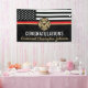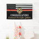 This design features a firemen's flag with black and white stripes, and a thin red line stripe as well. "Congratulations" and a fireman's badge sits above the name of the graduating or retiring firefighter, lieutenant, or chief. Celebrate in style!