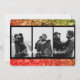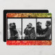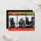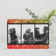 get the romance that you have ever felt on a such wedding invitation, add your custom three couple photos in front of ombre multicoloured green, gold, purple, red and pink texture abstract and script typography text.